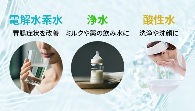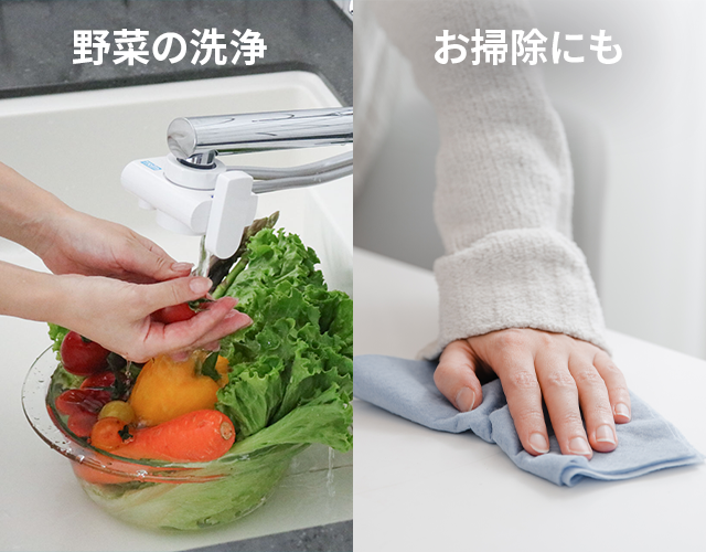 例えば、電解水素水でお米を炊いたり、野菜を洗ったり。酸性水でうどんをゆでたりと料理のシーンでも活用できるので、料理がより楽しくなります。